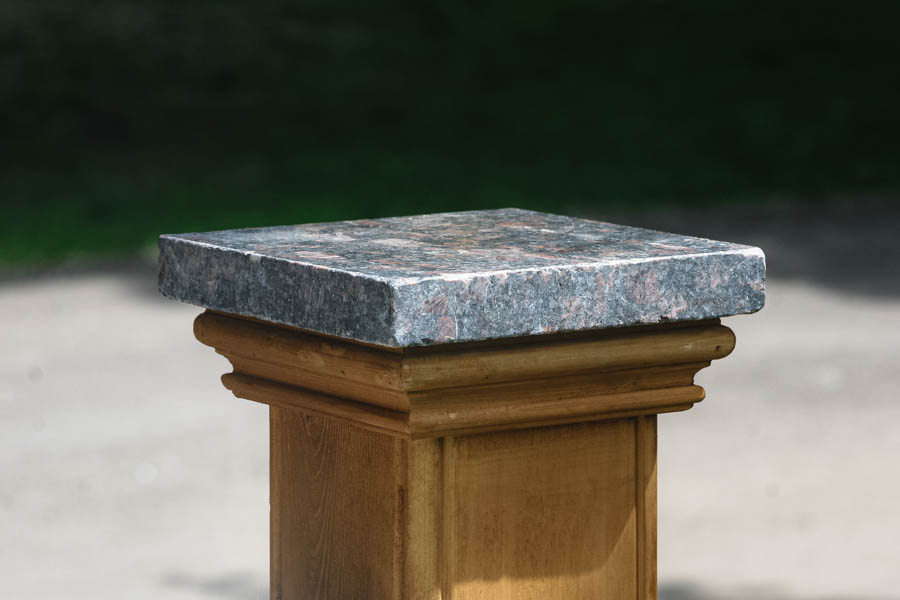 Granite is chosen for its exceptional durability and cost-effectiveness. Crafted from 100% natural stone, it exhibits remarkable resilience against weather conditions. The granite we use is sourced from leftover countertop manufacturing materials, preventing them from being wasted in landfills. Additionally, the skirt trim is deliberately cut larger than the post size to accommodate the natural movement of the wood.